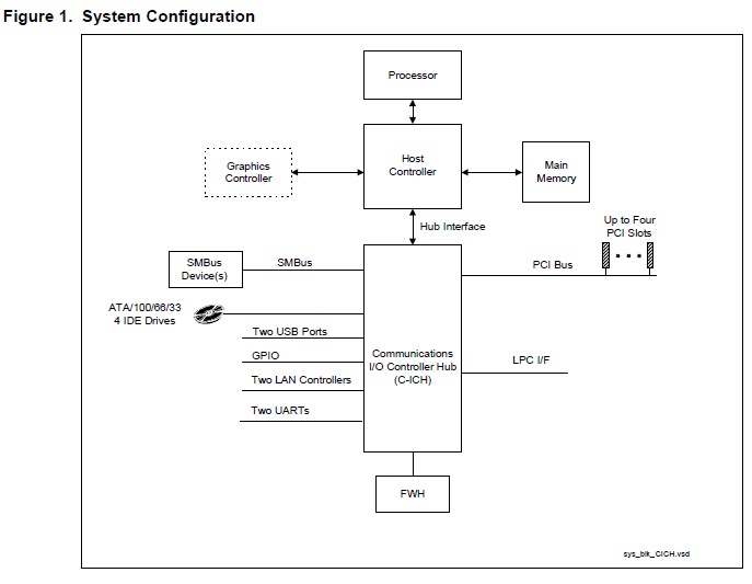 The FW82801DB is a highly integrated multifunctional communications I/O controller hub that provides the interface to the PCI bus and integrates many of the functions needed in today communications applications. It incorporates a variety of PCI functions that are divided into two logical devices (30 and 31) on PCI Bus 0 and one device on Bus 1. Device 30 is the Hub Interface-to-PCI bridge. Device 31 contains all the other PCI functions, except the LAN controller .