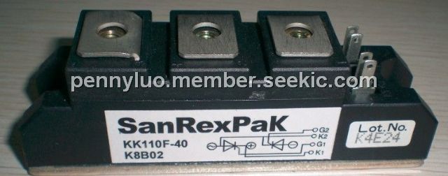 The KK110F-40 is a Power Thyristor/Diode Module. The KK110F-40 is designed for various rectifier circuits and power controls. following internal connections and wide voltage ratings up to 1,600V are available. High precision 25mm (1inch) width package and electrically isolated mounting base make your mechanical design easy.