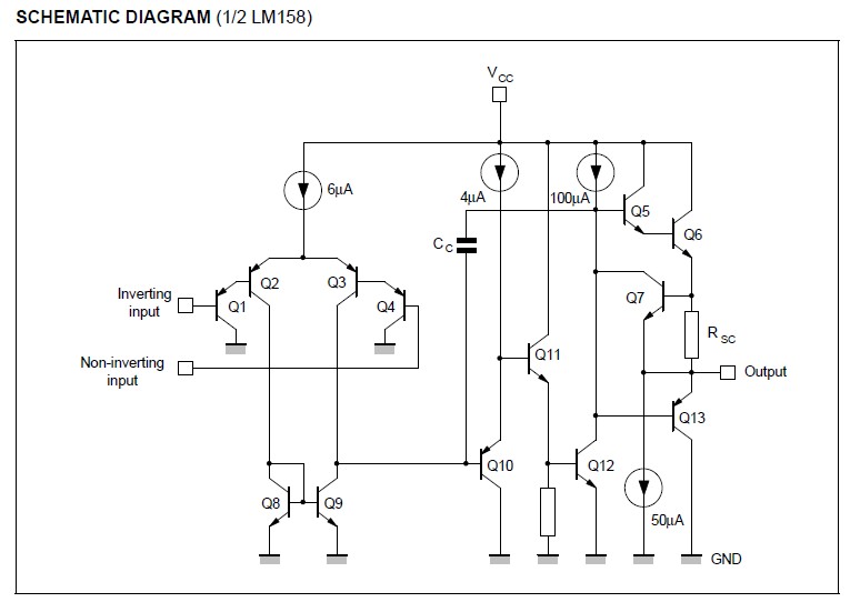 Features:(1)internally frequency compensated; (2)large dc voltage gain: 100db; (3)wide bandwidth (unity gain): 1.1mhz(temperature compensated); (4)very low supply current/op (500μa)essentially independent of supply voltage; (5)low input bias current: 20na(temperature compensated); (6)low input offset voltage: 2mv; (7)low input offset current: 2na; (8)input common-mode voltage range includes ground; (9)differential input voltage range equal to the power supply voltage; (10)large output voltage swing 0v to(vcc - 1.5v).