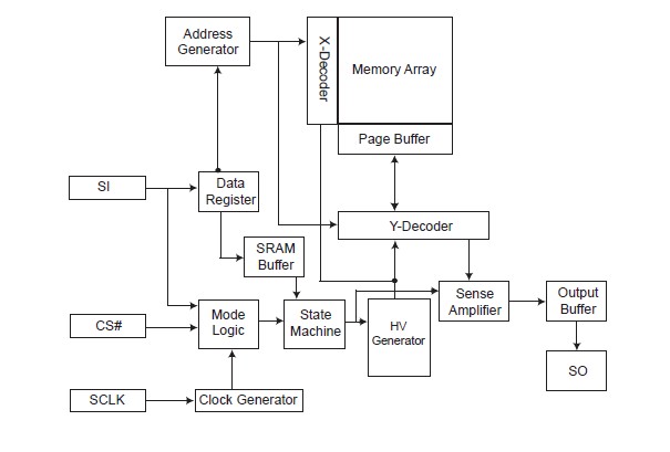 The MX25L512MC-12G is a CMOS 524,288 bit serial Flash memory, which is configured as 65,536 x 8 internally. The MX25L512MC-12G features a serial peripheral interface and software protocol allowing operation on a simple 3-wire bus. The three bus signals are a clock input (SCLK), a serial data input (SI), and a serial data output (SO). SPI access to the device is enabled by CS# input. The MX25L512MC-12G provide sequential read operation on whole chip. After program/erase command is issued, auto program/ erase algorithms which program/ erase and verify the specified page or sector/block locations will be executed. Program command is executed on page (256 bytes) basis, and erase command is executes on chip or sector (4K-bytes).